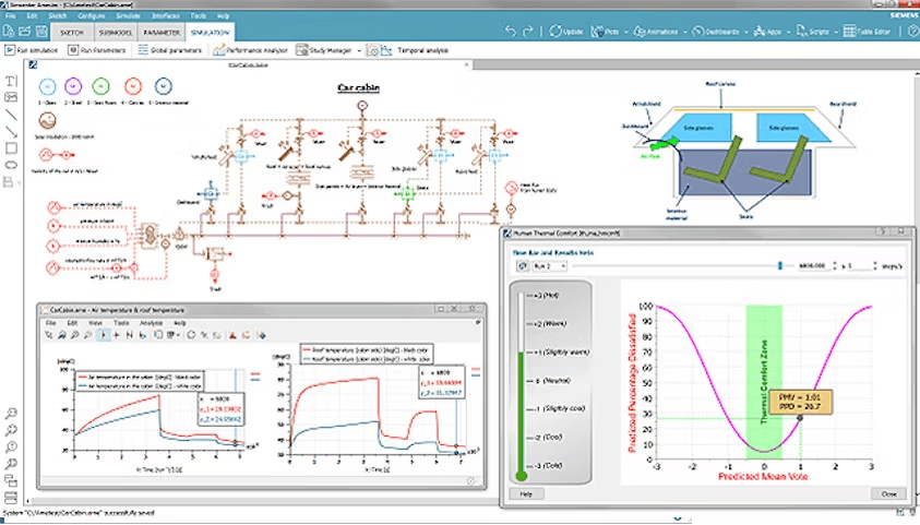 Siemens Amesim - 領先的 1D 系統模擬軟體,助您提升設計效率 Amesim 是什麼? Siemens Amesim 是一款 多物理場 1D 系統模擬軟體,專為 機電整合、熱流分析、液壓與控制系統模擬 而設計。透過 預建的元件模型庫,工程師可快速搭建複雜系統模型,在設計初期即進行系統級模擬與驗證,以降低開發風險、縮短上市時間並優化產品性能。Amesim 結合 AI 自動化模擬、數位雙生(Digital Twin) 和 高效能運算(HPC),讓工程團隊能夠更快、更準確地完成設計分析,進一步推動創新。✅ 多物理場整合模擬 – 提供 機械、液壓、電氣、熱流、控制系統整合,涵蓋所有工程需求。 ✅ CAE 相容性高 – 可與 Simcenter 3D、Flotherm、NX 無縫整合。✅ 內建龐大元件庫 – 內建 數千種元件模型,涵蓋 車輛、航太、能源、智慧製造 領域。✅ 支援 AI 與最佳化技術 – 透過 AI 加速設計探索、參數最佳化,提高決策準確度。 ✅ 與 MATLAB/Simulink 整合 – 可進行 控制系統共模擬,適用於 機電與嵌入式系統設計。 ✅ 支援雲端模擬 – 透過 Siemens Xcelerator 平台,支援 雲端計算與遠端團隊協作。 amesim介面介紹 Amesim 在不同產業的應用 🚗 汽車與電動車產業內燃機與電動馬達模擬 – 進行 燃油動力系統、混合動力車、純電動車(EV) 的能量管理與性能分析。電池熱管理與冷卻系統設計 – Amesim 可模擬 電池模組的熱傳導、冷卻液流動、散熱片效能,提高電池續航力。車輛空氣動力學與熱流分析 – 減少風阻,提高燃油或電力效率。ADAS 與自駕車模擬 – 整合控制演算法,進行駕駛輔助系統(ADAS)測試。✈️ 航太與國防飛機液壓與環控系統設計 – 透過 1D 模擬預測飛機操控與機艙環境控制系統的性能。渦輪引擎燃油管理 – 分析 燃油輸送、燃燒動力學、推進系統熱管理,優化飛行效率與安全性。起落架與液壓系統模擬 – 確保起落架在各種環境條件下能正常運作。⚡ 能源與可再生能源燃氣輪機與蒸氣渦輪機模擬 – 進行 燃燒室效率、渦輪葉片熱應力分析、冷卻流體動態模擬。風力與太陽能系統設計 – 透過 Amesim 進行 風力渦輪葉片優化、太陽能熱傳與電力轉換模擬。氫燃料電池技術 – 開發與測試 氫燃料電池的流體動態、熱管理與電化學反應模擬。🏭 智慧製造與工業自動化機械手臂與機器人動力模擬 – 針對 機械手臂負載、電機控制、伺服驅動系統 進行模擬。工業冷卻與空調系統分析 – 設計工業空調系統的 熱交換、壓縮機效率、氣流分佈。液壓壓縮機與氣動設備優化 – 透過 Amesim 進行 液壓與氣動致動系統的動態性能測試。🏥 醫療設備與生物工程醫療設備流體模擬 – 針對 呼吸機、血液循環系統、輸液泵浦 進行動態分析。人工心臟與輔助裝置開發 – 測試 人工心臟血流動力學與泵浦效能,提高患者安全性。醫療冷卻與加熱系統 – 優化 醫療影像設備、雷射手術裝置的熱管理設計。 為何選擇 Siemens Amesim? ✅ Amesim 提供全方位 1D 系統模擬能力,適用於汽車、航太、能源、工業製造、醫療設備等領域! 特色 Siemens Amesim 其他 1D 模擬軟體 多物理場整合 ✅ ⬤ 完整的內建元件庫 ✅ ❌ 與 CAD/CAE 工具整合 ✅ ⬤ 熱流與冷卻系統模擬 ✅ ⬤ 控制系統與 ADAS 模擬 ✅ ❌ PDM/PLM 整合 ✅ ❌ MATLAB/Simulink 整合 ✅ ⬤ AI 設計最佳化與 HPC 運算支援 ✅ ❌ Amesim 各種應用說明 機械系統模擬 採用多物理場系統分析方法,靈活應對各種架構和技術需求。例如,不論是汽車領域的動力系電氣化、航空航天行業中可重複使用的運載系統,還是船舶行業對代用燃料液態天然氣 (LNG) 的使用,軟體的建模功能都能够爲這些技術的實施提供支援。通過在單一平臺上執行一次全面的跨系統影響分析,可將能够設計和評估推進系統對各種指標的影響,如機載發電或車輛污染物排放。應用面如:動力傳動系統模擬、車輛系統動力學模擬、飛機控制系統模擬、起落架系統模擬。 推進系統模擬 對於Amesim於推進系統的模擬方面,例如: 汽車領域的動力系統、航空發動機,還是船舶行業對代用燃料液態天然氣 (LNG) 的應用,軟體的建模功能都能够爲這些技術的實施提供支援。應用方面如內燃機系統模擬、燃氣輪機、燃氣機輪葉片冷卻模擬,燃氣輪機按次空氣系統模擬、船舶推進系統模擬、太空飛行器推進技術和子系統模擬。 推進系統模擬 降階模型創建 (ROM) [reduced-order models] 軟體支持在直觀界面中創建降階模型 (ROM),提供機器學習、綫性代數和統計學領域的理想簡化技術。ROM 內存占用小,不依賴於工具,可實時操作,支持在産品生命周期全階段用作數字孿生,從而促進决策優化,進一步完善優質運營。 系統模擬模型管理 Amesin系統模擬軟體産品組合由一系列專用解决方案組成,可靈活滿足各類參與者在執行可靠且可用系統仿真分析過程中的即時需求。該産品組合包括一系列解决方案,可生成和最佳化系統模擬架構、編寫詳細的特性架構,還可在 Web 應用程序或多屬性平衡環境中使用特性模型。它支持多人在同一項目上協同工作。適用於 Git 的 Simcenter系統模擬,客戶端選項有助於促進系統模擬的所有參與者協同工作,提供模擬分析資源的日常管理功能,包括分支、版本控制和基於角色的訪問控制。 系统模擬平台 軟體系統提供一個先進、開放、强大且用戶友好的多物理場系統模擬平臺,以建模、運行和分析複雜系統和組件。强大的功能、分析和優化
