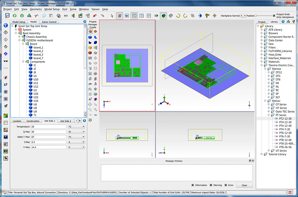 FloTHERM 建模設定: 建模、材質參數、網格設定、PCB設定、CHIP設定、風扇設定