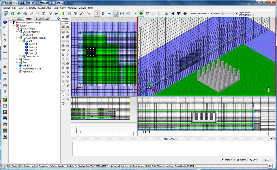 Flotherm經過相當長時間的發展,軟體功能已趨於相當完備。例如,在項目管理器和繪圖板中添加了模型檢查功能,允許用戶查看哪些物件附有材料,附加到每個物件的電源以及相應的組件功率,物件是否被創建網格等屬性。