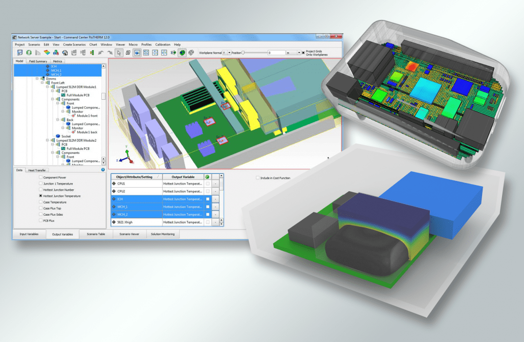 FloTHERM 透過 參數化建模(Parametric Modeling)智慧元件(SmartParts),讓工程師能夠快速建立與修改模型,針對不同設計方案進行比較與優化,確保最終設計滿足熱性能要求。這項功能特別適用於 PCB 設計、散熱器優化、風扇配置等電子冷卻應用。
