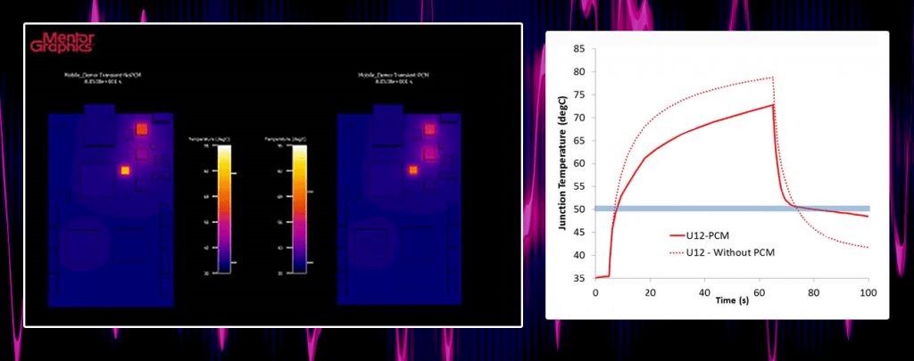 FloTHERM 接受 潛熱與熔化溫度 作為輸入,在瞬態分析中自動應用這些參數。使用者可設定 相變材料(PCM),進行元件熱管理與觸摸溫度評估,以最佳化散熱設計。