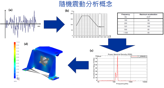 4.一般分析工程師設定隨機振動input皆是比照輸入實驗機台的PSD頻譜進行設定,如果實驗中震動情況會隨著路徑傳遞有所改變,模擬中亦然。