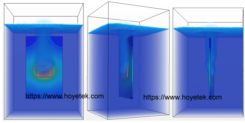 沉浸式冷卻模擬與分析/浸沒式冷卻模擬與分析/ Immersion cooling Post author:admin Post published:26 2 月, 2020 Post category:Uncategorized 沉浸式冷卻熱流分析/浸沒式冷卻熱流分析 電子散熱 傳統的電子散熱方案以氣冷與液冷為主;氣冷主要可以分為對機具開孔讓其自然散熱的自然對流,與安裝風扇利用風流帶走熱量的強制對流。而液冷主要是利用管路輸送冷卻液體,進入機具模組內透過導熱媒介將熱能帶出至外部,升溫的冷卻液於外部處理後再輸入至機具模組內循環散熱。 沉浸式冷卻/浸沒式冷卻 沉浸式冷卻/浸沒式冷卻(Immersion Cooling)為一種新興的電子散熱解決方案,其主要的概念是將電子物件直接浸泡於不導電的冷卻溶液之中,電子零件運作時產生的熱能會直接地傳導至冷卻液中,不必再另外藉由像是散熱鰭片、散熱版、界面材料,可以大幅的提升能源效率,且由於整個電子零組件浸泡至冷卻液中,所以相對於氣冷與傳統的液冷設計,不容易出現無法帶走熱能的死角。而沉浸式冷卻又可以分為單相式與雙相式,顧名思義,單相式是讓冷卻液維持在液體相,藉由輸送回收液體來交換熱量;而雙相式則是特別選用”低沸點”的不導電溶液當作冷卻液,在冷卻電子零件的過程中利用冷卻液沸騰現象來帶走熱量。 雙相式沉浸式冷卻 目前主流的雙相式沉浸式冷卻,是使用低沸點不導電的氟化液。由於其低沸點的特性,冷卻液在電子零件運作升溫的過程,會快速達到沸騰現象,而沸騰即是液體相吸收熱能達到潛熱轉變成氣體相的現象,所以冷卻液的沸騰持續進行,冷卻液就持續吸收大量熱能。而冷卻系統的上方再藉由低溫的金屬管路,使得氣體相的冷卻液氣體,接觸冷凝成液體,滴落回冷卻液槽中。 使用CAE模擬設計 我們可以藉由CAE軟體來協助設計電子零件,例如觀測模擬結果決定內部零組件的擺放,預測多少容量的冷卻液可以協助目標物件降低多少溫度等……,而大部分的熱流軟體不擅長處理沸騰現象,因為要模擬沸騰現象,軟體必須支援求解多相流、相變化、流體張力,且根據冷卻液選擇的不同,還要提供能自訂義的潛熱參數、流體粘度等。Star-CCM+是一個專解連續介質力學的高階CFD軟體,其擅長求解複雜的流體現象,以及多相流的模擬。以下使用Star-CCM+模擬貼附於PCB板上的晶片浸泡在3M氟化冷卻液中,利用沸騰進行冷卻的行為,此氟化液的沸點為56°C,晶片發熱功率為120W。首先,對照組為設定為無沸騰現象的冷卻液,模擬時間至15秒時,晶片溫度約為260°C 而將沸騰現象模擬出來,模擬時間約莫15秒時,晶片溫度為102°C由此可以觀測到,沸騰後的液體藉由潛熱大量地帶走晶片產生的熱量。 一般電子散熱分析如Flotherm、ANSYS/ICEPAK、FLOEFD等熱流分析軟體,面對這樣的題目,無法解決這樣的物理現象,利用Star-CCM+ 模擬協助電子零件於浸沒式冷卻的設計,預先規劃所選用的冷卻液種類,電子功率與冷卻液容積比值,電子組件內部讓冷卻液浸沒的管道規劃等。 網站相關資訊 Siemens STAR-CCM+官方網站資訊 合研科技STAR-CCM+相關網頁資訊 You Might Also Like Flotherm 與其他電子散熱模擬軟體CFD全面比較 14 2 月, 2025 低軌衛星熱控挑戰:Simcenter 3D SST 如何優化酬載熱管理? 21 2 月, 2025 人因工程模擬的重要性 21 2 月, 2025