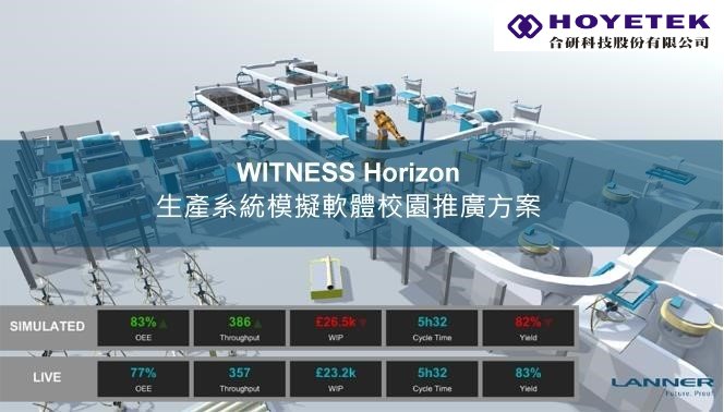 我們正在推廣學校使用虛擬工廠模擬分析軟體WITNESS Horizon,來協助老師進行教學與研究,WITNESS Horizon 是來自英國的著名離散事件系統模擬軟體,透過可視化的拖拉方式,快速完成產線規畫與模擬,此軟體可用於模擬產能、稼動率、CT、產線瓶頸、倉儲管理、人員管理、生產管理等,同時也可以進行豐富的3D展示。目前包含電子大廠APPLE、物流業DHL、飲料大廠可口可樂、車業龍頭福特、航空業大廠AIRBUS、都有大量使用。